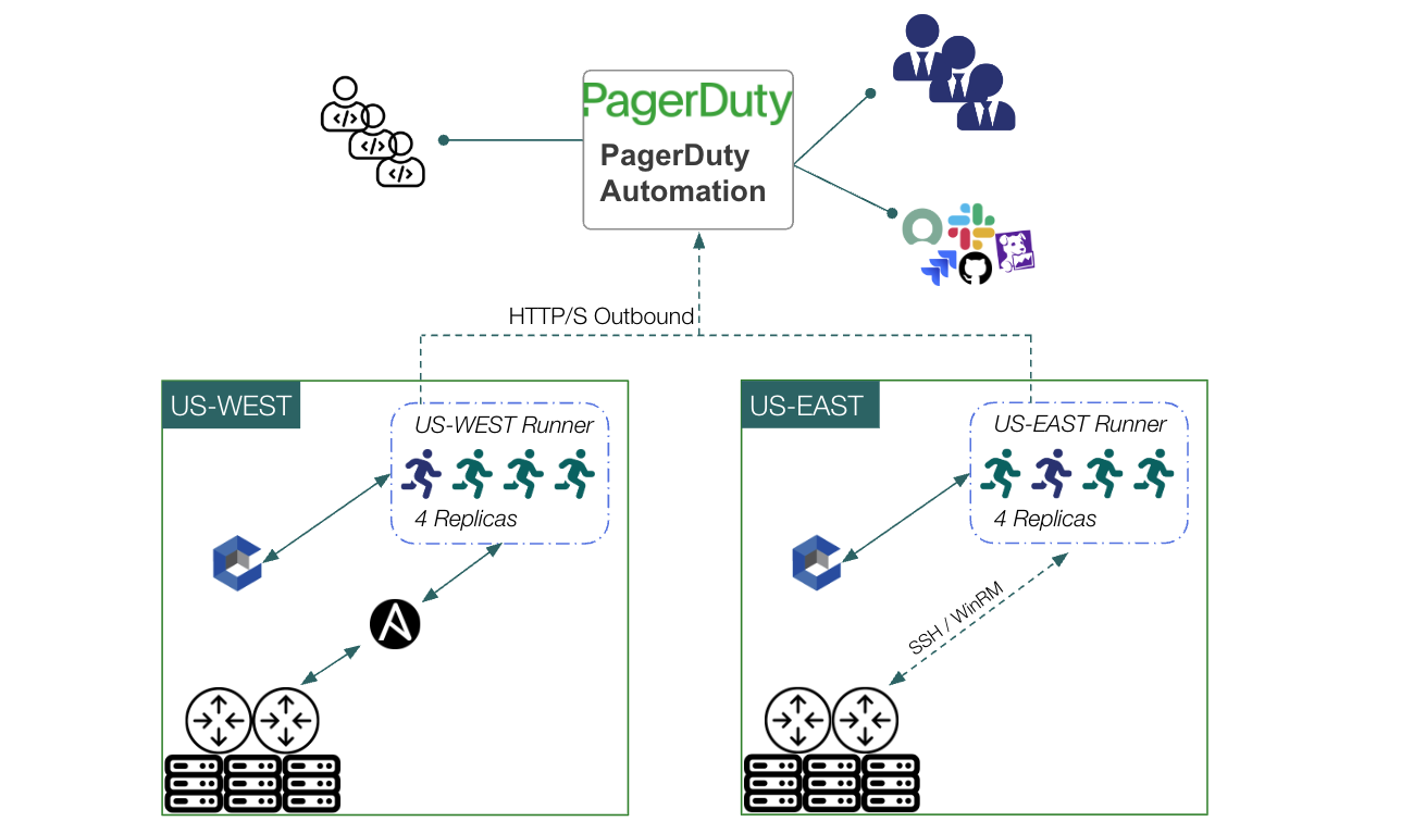The Enterprise Runner is a critical component of Runbook Automation that allows for dispatching workflows into secure environments - whether using Self-Hosted or Runbook Automation SaaS.