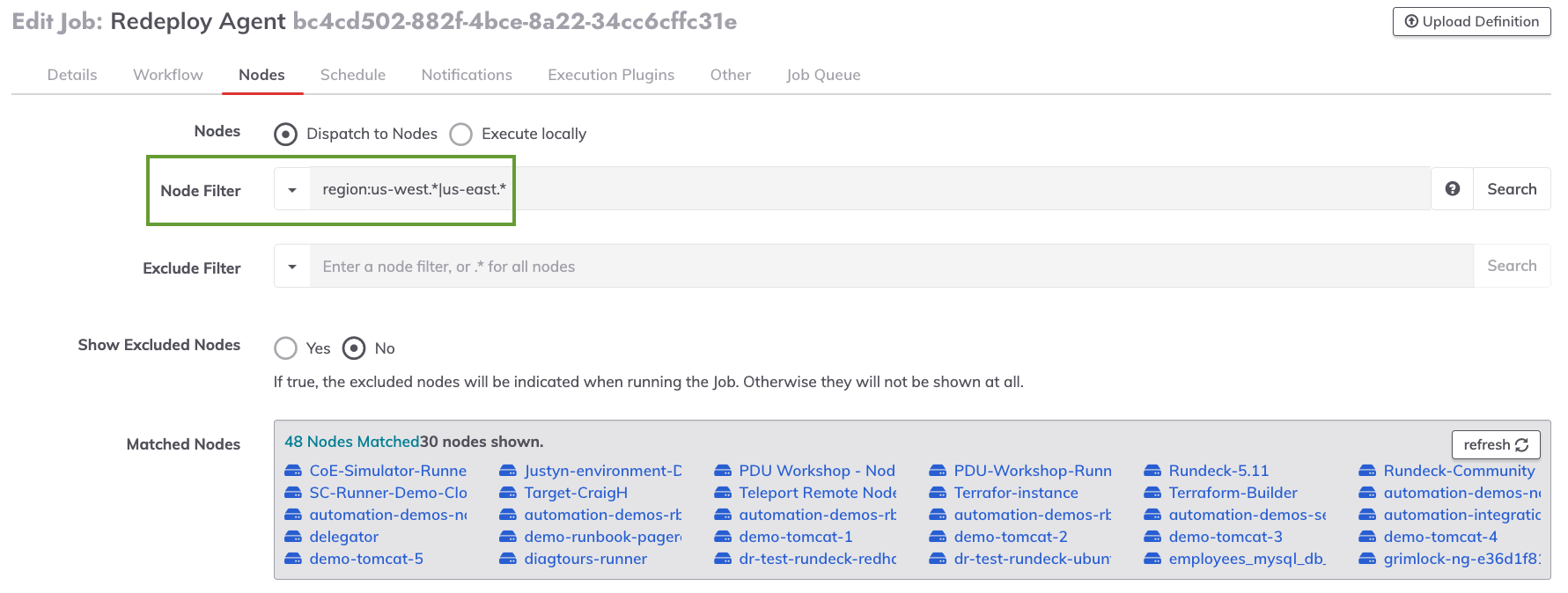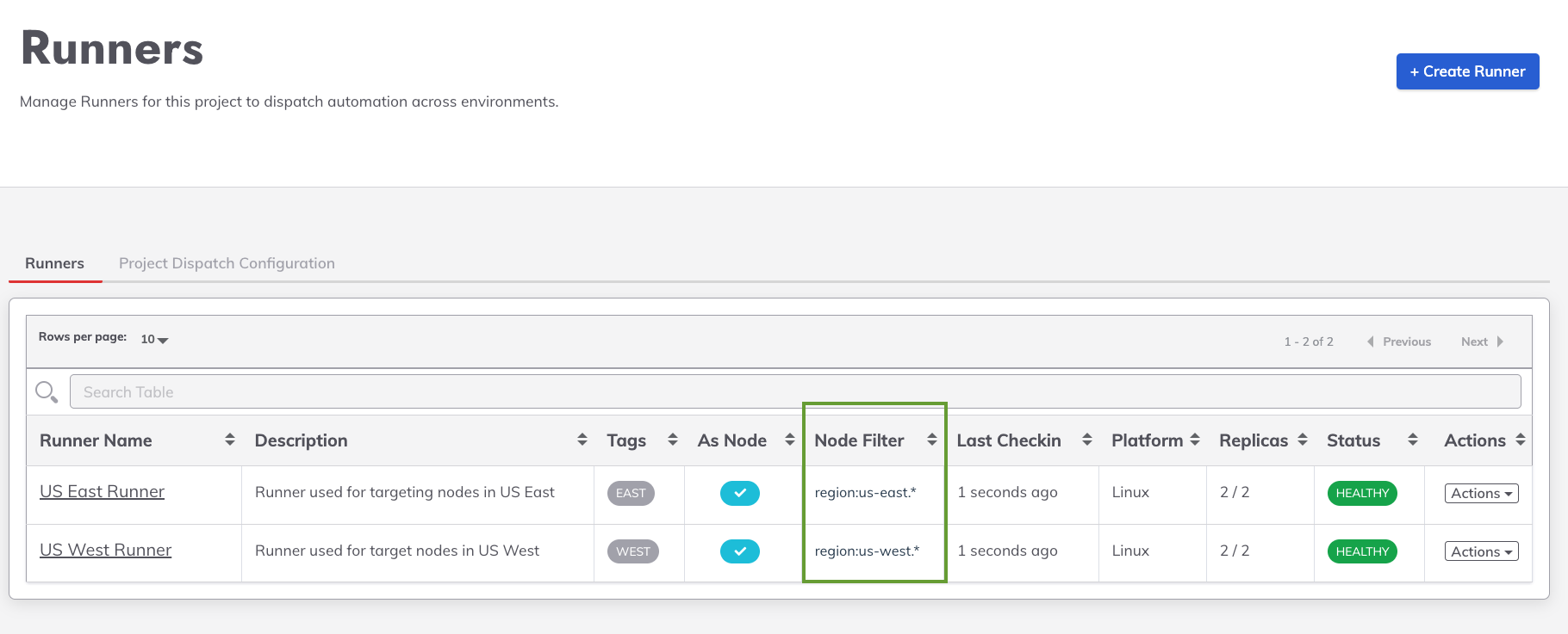 When this Job is invoked, the system identifies which Runners are responsible for the nodes that are targeted by the Job. In this case, the system will select the Runner that is assigned to US-WEST